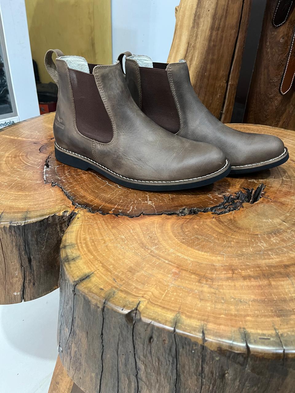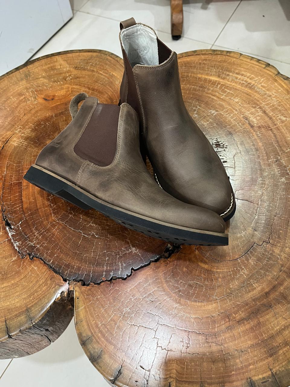 Esta bota Chelsea é a definição de praticidade e elegância urbana com um toque rústico. Confeccionada em couro na cor marrom stone, o material apresenta variações naturais de tonalidade que conferem um aspecto autêntico e resistente. O design é focado no minimalismo e no conforto, sendo um calçado extremamente versátil que combina tanto com jeans quanto com trajes mais alinhados.