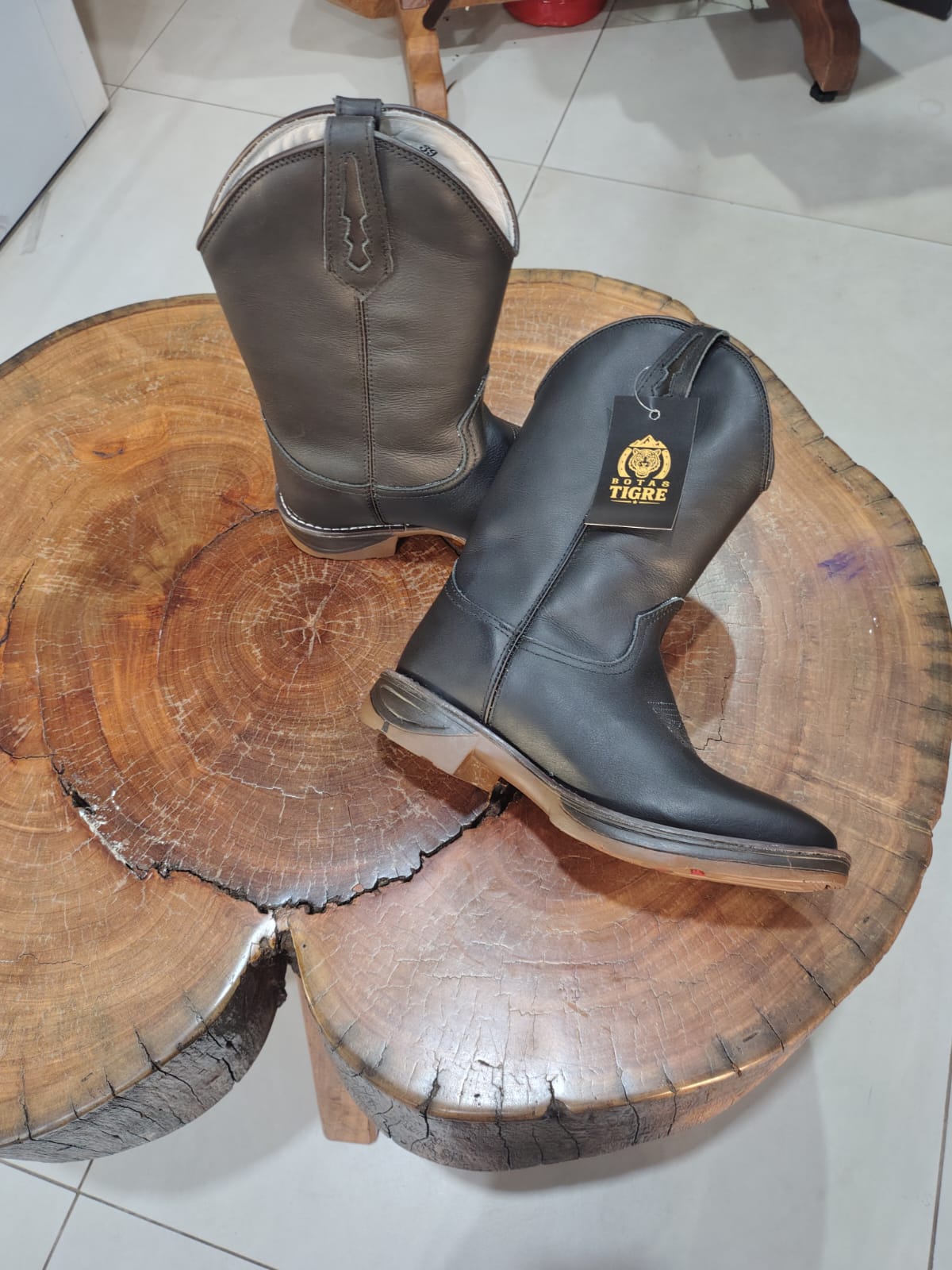 O grande diferencial técnico é o solado Jump, projetado especificamente para absorver impactos e oferecer máxima aderência em diversos terrenos, garantindo um caminhar leve e estável. No peito do pé, bordados decorativos sutis em linha cinza adicionam um detalhe artesanal discreto ao design. O cano liso conta com puxadores superiores integrados que facilitam o calce, enquanto a vira clara com pesponto branco reforça a união entre o corpo da bota e o solado, garantindo resistência extra e um acabamento refinado.