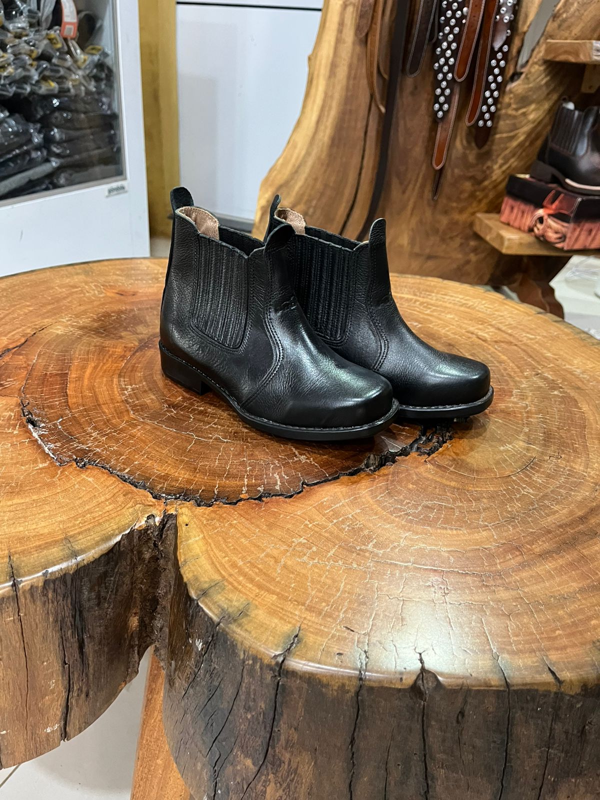 A botina infantil preta oferece um visual tradicional e discreto para o público mirim. Seu acabamento é uniforme em toda a peça, destacando as costuras reforçadas que contornam o cabedal e o peito do pé. O bico arredondado proporciona o ajuste necessário para o uso prolongado, enquanto o sistema de elásticos laterais facilita a entrada do pé sem a necessidade de cadarços. Equipada com um puxador traseiro resistente e solado preto de perfil baixo com boa aderência, esta botina une a funcionalidade do estilo country com a simplicidade necessária para compor uniformes ou looks casuais. Uma escolha robusta e elegante para as aventuras do dia a dia.