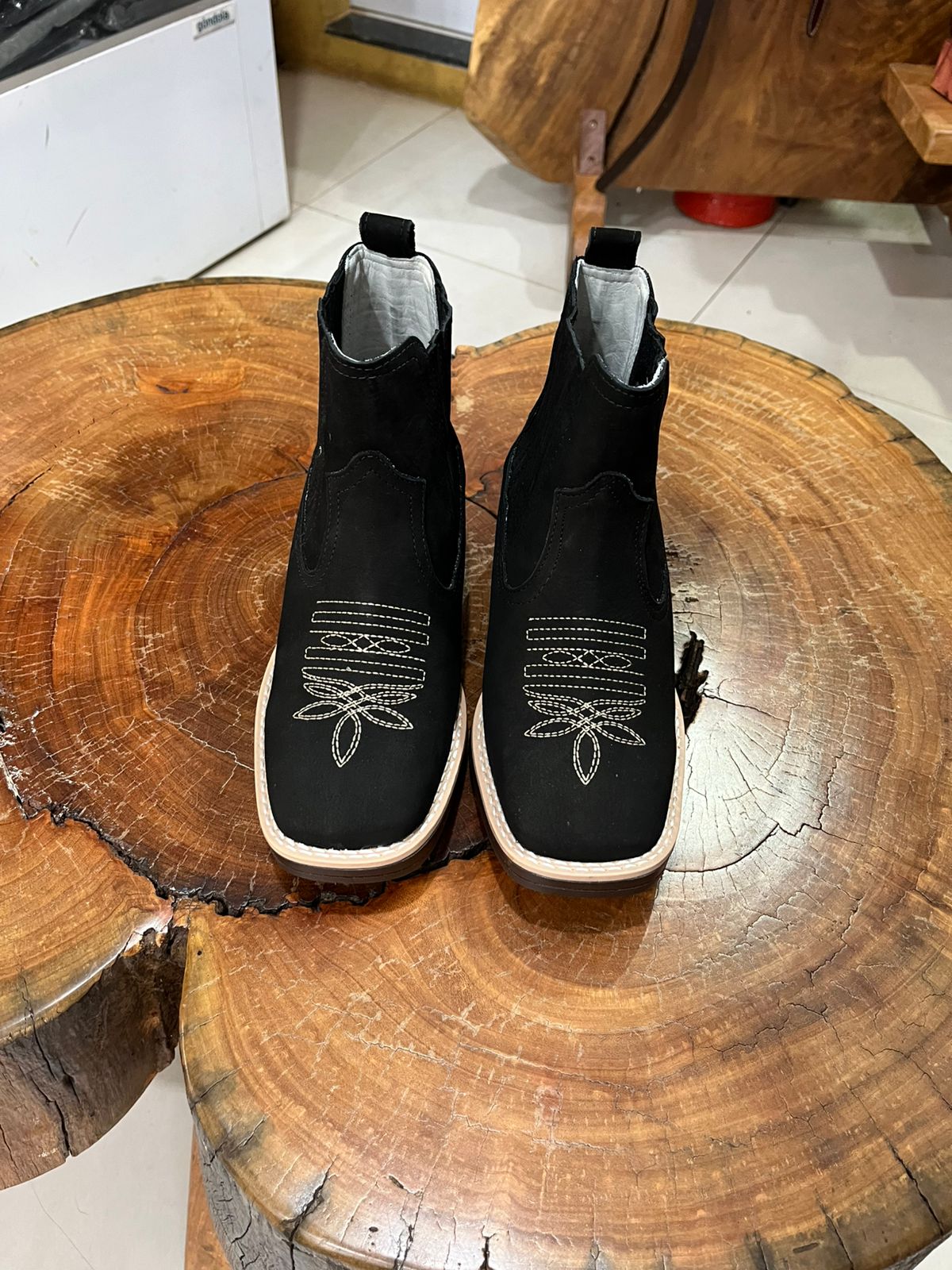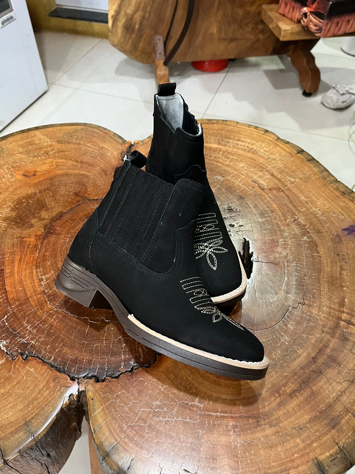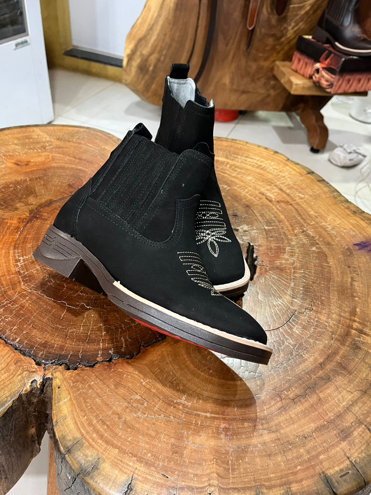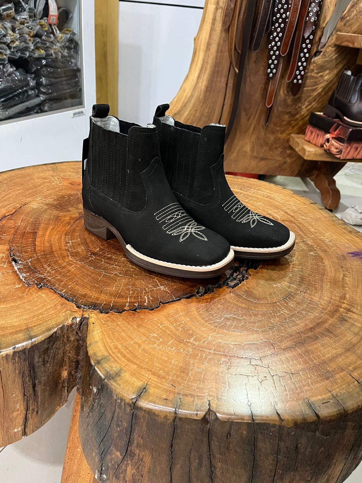 Esta botina unissex na cor preta é a combinação perfeita de resistência e estilo country para todos os públicos. O modelo apresenta o tradicional bico quadrado e se destaca pelo bordado geométrico em linha clara no peito do pé, que confere um contraste elegante e autêntico. Equipada com o solado jump, a peça oferece uma estrutura robusta e anatômica, garantindo uma pisada firme e maior durabilidade em diferentes terrenos.