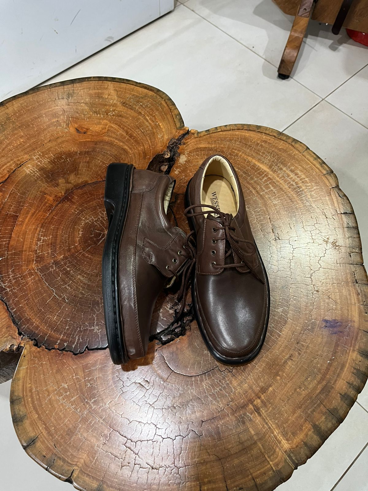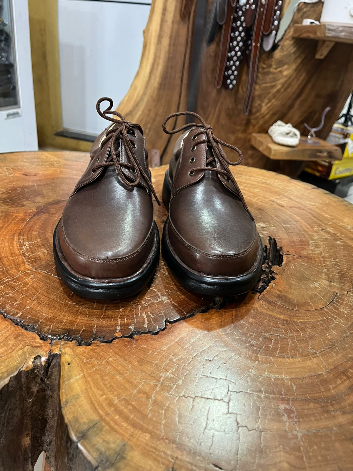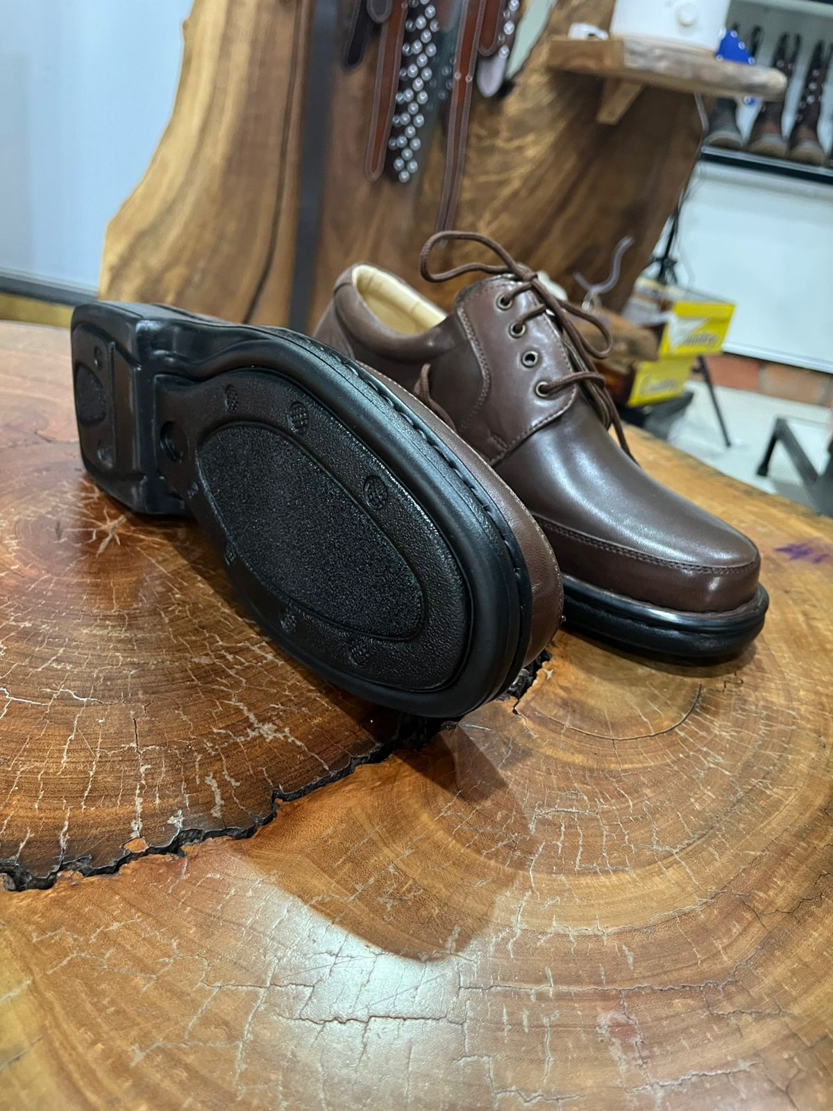 O fechamento por cadarços de algodão encerado permite um ajuste seguro e personalizado. Internamente, o sapato conta com forração clara que auxilia na respiração dos pés e palmilha acolchoada para absorção de impactos. O bico arredondado oferece liberdade de movimento para os dedos. O solado de borracha robusto e flexível é antiderrapante, garantindo estabilidade e segurança a cada passo. A construção é reforçada com costuras duplas e pespontos visíveis, assegurando durabilidade e um acabamento sofisticado que resiste ao uso intenso diário.